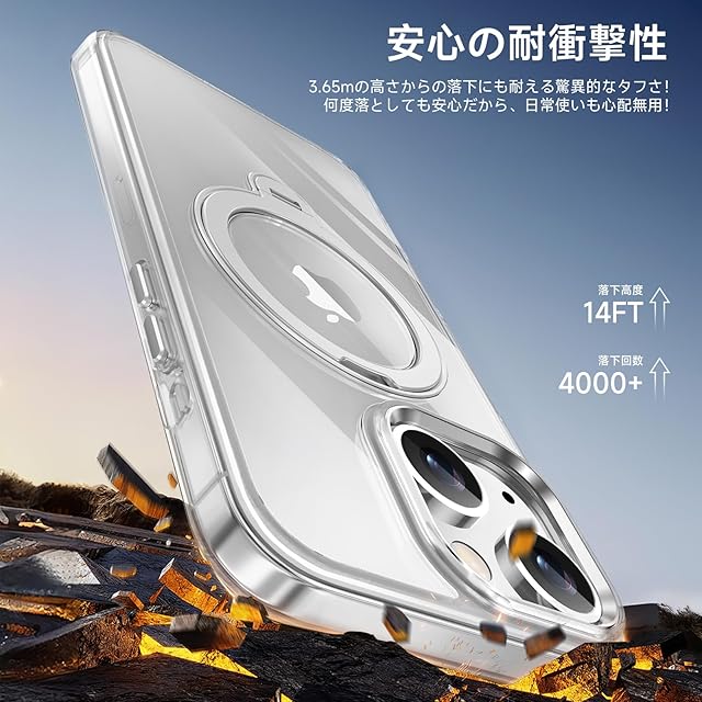 商品名:【透き通る上質感・多機能360°回転スタンド】KMAMBNG iPhone 15 用 ケース Magsafe対応【耐衝撃・金属感・真空メッキ・黄変防止・ストラップホール付き】縦横両立 角度自在 調整可能 磁吸機能でワイヤレス充電対応 おしゃれ スマホケース (クリア, iPhone 15)