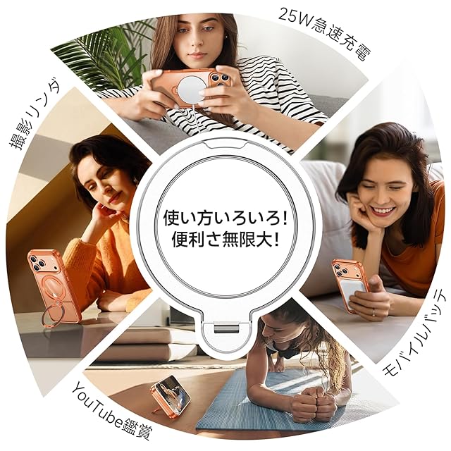 【超磁力&多様なMagSafe製品対応】業界最強のN52磁石を搭載し、16Nの強力な磁力を実現。車載ホルダーとの併用で、悪路や激しい振動でも落下の心配がありません。MagSafe用ワイヤレス充電器、大容量モバイルバッテリー、ウォレットにも即対応可能で、便利に使用できます。冷蔵庫やロッカーなどの鉄部分にも取り付け可能、自由に動画視聴が楽しめます。※鉄の含有量や分布面積によって吸着力が弱くなる場合があります。【①本製品はMagSafeデバイスに対応していますが、Magsafeウォレット使用時に「探す」機能は表示されません;②QIワイヤレス充電には対応しておりませんので、ご購入前にご検討いただければ幸いです。】