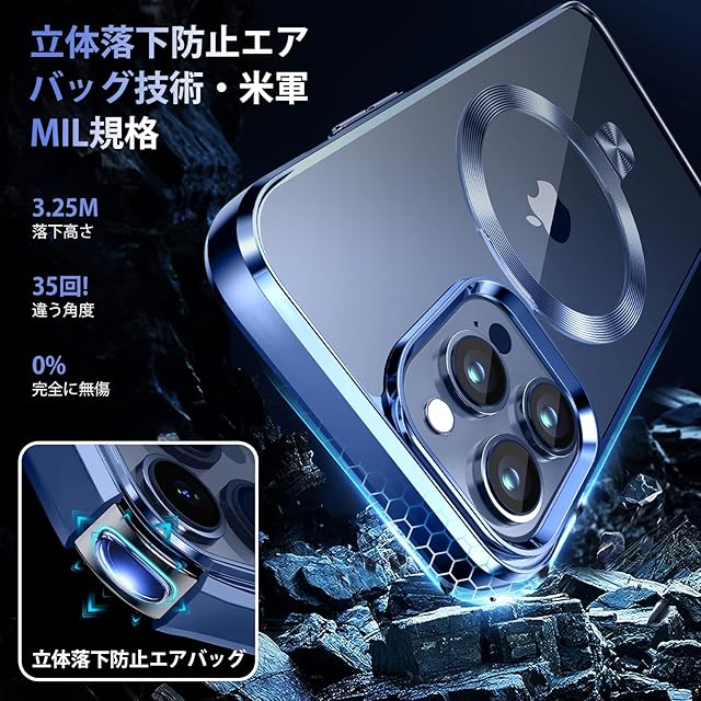 【軍用レベルの保護力・「自動車」グレードの衝突防止エアバッグの特許】このiPhone 12 Pro Maxケースは4層TPUエッジが採用され、また、側面全周耐衝撃のエアバッグのデザインで、緩衝作用を効果的に起こします。このiPhone 12 Pro Maxケースのエアバッグ設計は自動車の衝突防止設計原理に基づいており、スマホが地面に落ちると、スマホとケースのエアバッグが押し付けられます。エアバッグ内に空気が入っているので弾力性があり、スマホの落下の衝撃力を分散し、スマホを保護します。さらに、このあいふぉん 12 Pro Maxケースは、本体よりも高い位置にあるカメラとスクリーンが特徴です。高低差のデザインで、日常生活でカメラや画面への擦り傷を防ぎます。iPhone 12 Pro Maxを全方位からしっかりと守ります。
