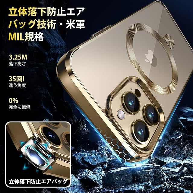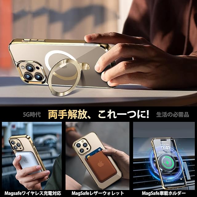 商品名:【CD MagSafeリング・スタンド一体】iPhone13 Pro Max 用クリアケース[MagSafe対応・隠しスタンド] [本体の色・メッキバンパー]ストラップホール付き 角度調整可 米軍MIL規格取得・耐衝撃 アイホン13 Pro Max透明ケース スマホケース13プロマックス人気6.7インチ(ゴールド)