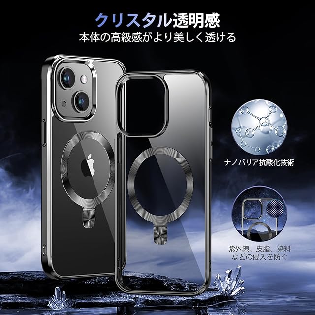 商品名:【CD MagSafeリング・スタンド一体】iPhone14 Plus 用クリアケース[MagSafe対応・隠しスタンド] [本体の色・メッキバンパー]ストラップホール付き 角度調整可 米軍MIL規格取得・耐衝撃 アイホン14 Mini透明ケース スマホケース14プラス人気 6.7インチ(ブラック)