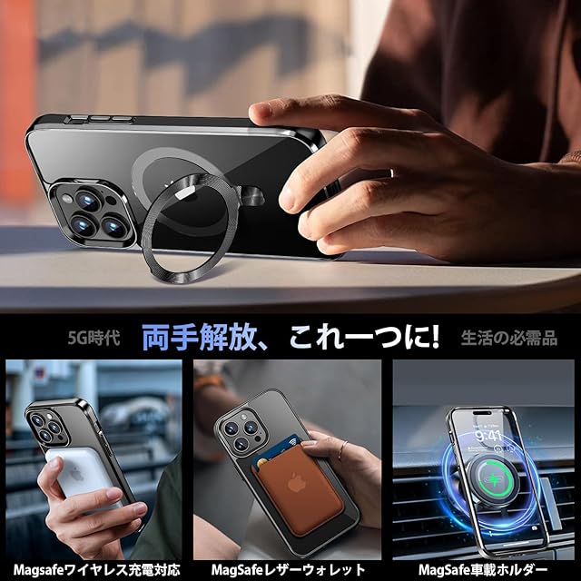 商品名:CSZENMEN【CD MagSafeリング・スタンド一体】iPhone 15 Plus 用クリアケース[MagSafe対応・隠しスタンド] [本体の色・メッキバンパー]ストラップホール付き 角度調整可 米軍MIL規格取得・耐衝撃 アイホン15 Plus透明ケース スマホケース15プラス人気 6.7インチ(ブラック)
