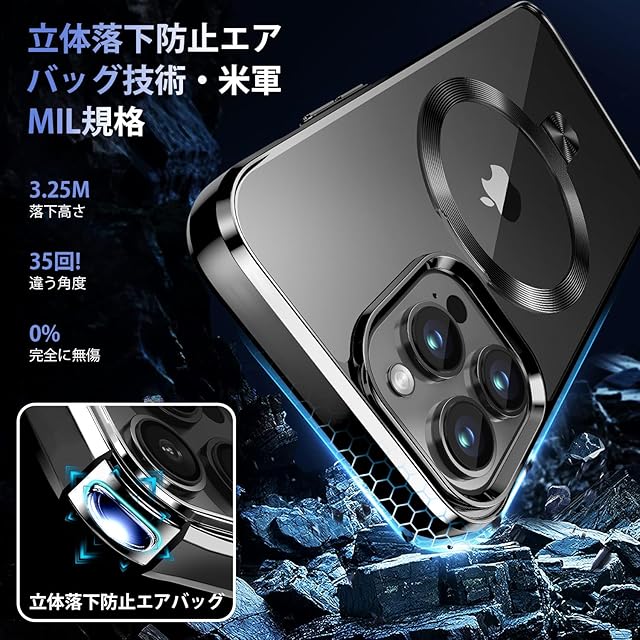 【iPhone専属色・本体を再現】このiPhone 16 Pro Maxケースは、スペースブラックのiPhone 16 Pro Max用に特別に設計されています。透明シェルの黄ばみのデメリットがなくなりました。側面にはドイツのバイエル社製TPU素材を使用、メッキと研磨プロセスの後、iPhoneのステンレススチールの外観を100%復元します。あと見た目的なことで言うと、電源ボタン・音量ボタンなど側面をぐるっとメッキでカバーされている統一感が個人的に魅力ですね。 このスマホケース- Pro Max ケースの背面は透明度高いポリカーボネート素材,新先端の「ナノバリア抗酸化技術」で表面に高分子遮断層を形成し、紫外線、皮脂などの侵入から徹底的に守れる。透明のバックパネルでAppleのロゴもはっきりと見えます、そして本体の美しさと高級感を最大限に生かすスタイリッシュなデザインです。