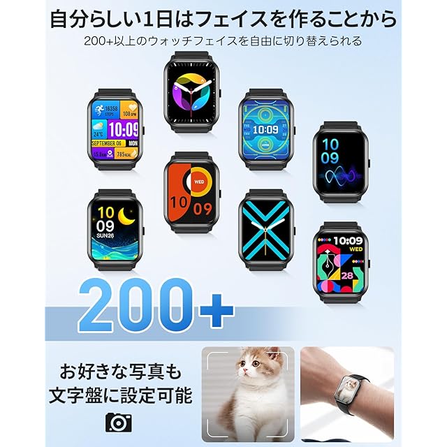 【豊富な機能搭載・200+種類文字盤編集可】目覚まし時計、懐中電灯、歩数計、遠隔カメラ、音楽再生、天気予報、ストップウォッチ、座りがち通知など便利な機能を備えて、日常生活をもっと手軽に。専用アプリで200+種類文字盤をダウンロードして文字盤を変更できます。さらに、お好きな写真も文字盤に設定可能です。