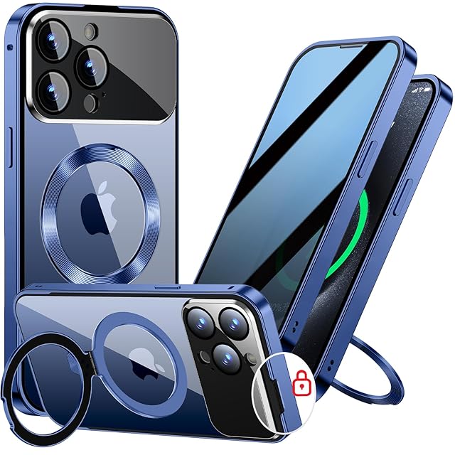 商品名:【スライドカバー磁気ロック・覗き見防止・新次元の一体型カメラ保護 +CD隠しスタンド】MESTRIEV iPhone 15 Pro 用 ケース 全面保護 Magsafe対応 ランヤードホール付き [本体を再現・マット金属フレーム ] 縦横両対応 9H強化ガラス ワイヤレス充電対応 クリア 両面スマホケース 高感度タッチ いphone15Pro 用 ケース 6.1インチ (ブルー)