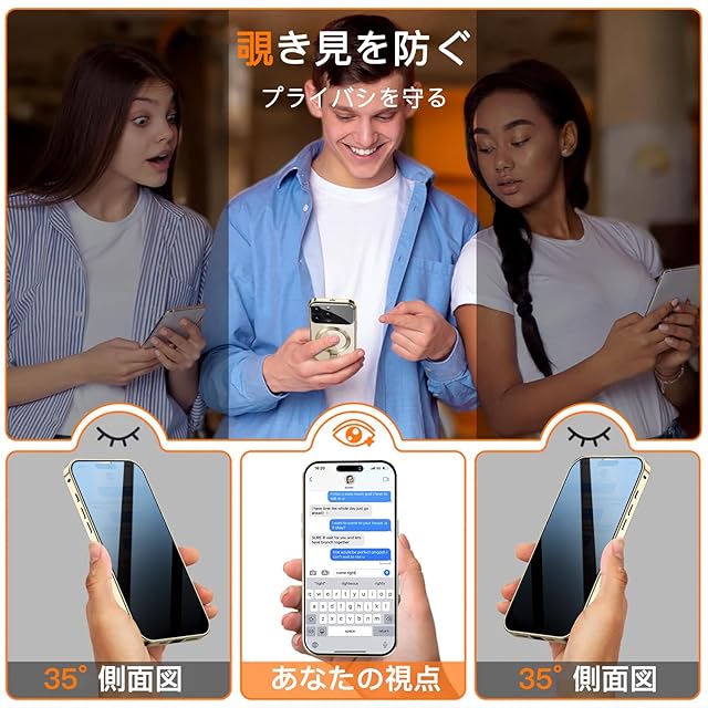 【360°全面保護・覗き見防止】このiPhone 16 Pro 用ケースは、前面・背面・側面すべてをしっかりと覆う360°全面保護構造を採用しています。日常的な使用にも耐える優れた耐衝撃性を備えており、あなたの大切なiPhone 16 Pro をしっかりと守ります。細部まで計算された保護力で、どんな使用シーンでも安心です。このアイフォン16プロケースの前面には高品質な覗き見防止フィルムを内蔵。正面からははっきり見える一方で、左右の視線からは画面が見えづらくなっており、通勤中やカフェなど人目が気になる場所でも安心して使用できます。プライバシーを重視する方に最適です。フロントカバーとバックパネルが一体化された構造で、装着時の厚みを最小限に抑えつつ、しっかりとした保護力を発揮