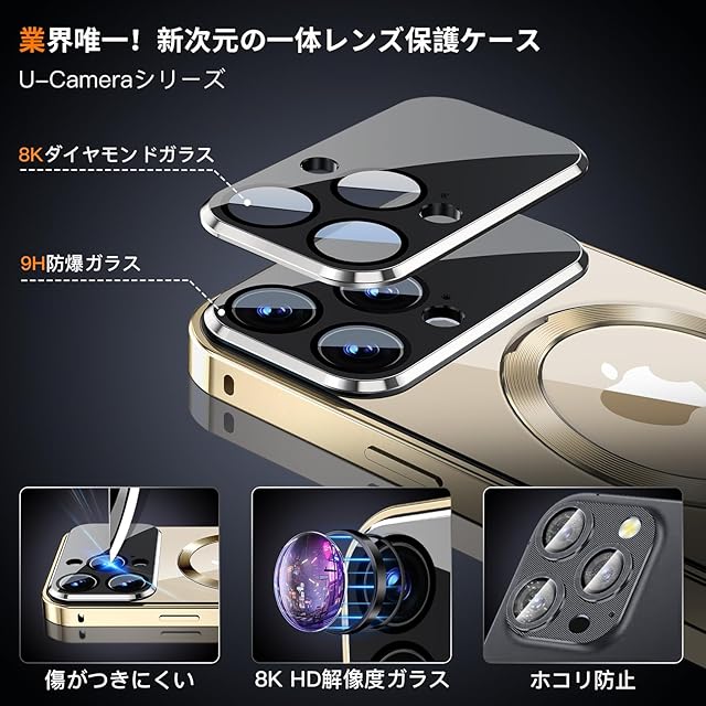 商品名:【スライドカバー磁気ロック・覗き見防止・新次元の一体型カメラ保護 +CD隠しスタンド】MESTRIEV iPhone 16 Pro 用 ケース 全面保護 Magsafe対応 ランヤードホール付き [本体を再現・マット金属フレーム ] 縦横両対応 9H強化ガラス ワイヤレス充電対応 クリア 両面スマホケース 高感度タッチ いphone16Pro 用 ケース 6.3インチ (ゴールド)