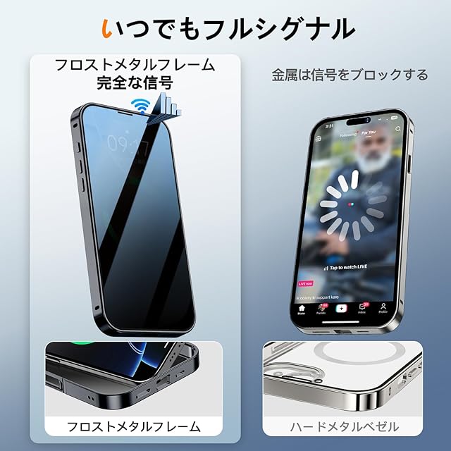 商品名:【スライドカバー磁気ロック・覗き見防止・新次元の一体型カメラ保護 +CD隠しスタンド】MESTRIEV iPhone 16 Pro 用 ケース 全面保護 Magsafe対応 ランヤードホール付き [本体を再現・マット金属フレーム ] 縦横両対応 9H強化ガラス ワイヤレス充電対応 クリア 両面スマホケース 高感度タッチ いphone16Pro 用 ケース 6.3インチ (ブラック)