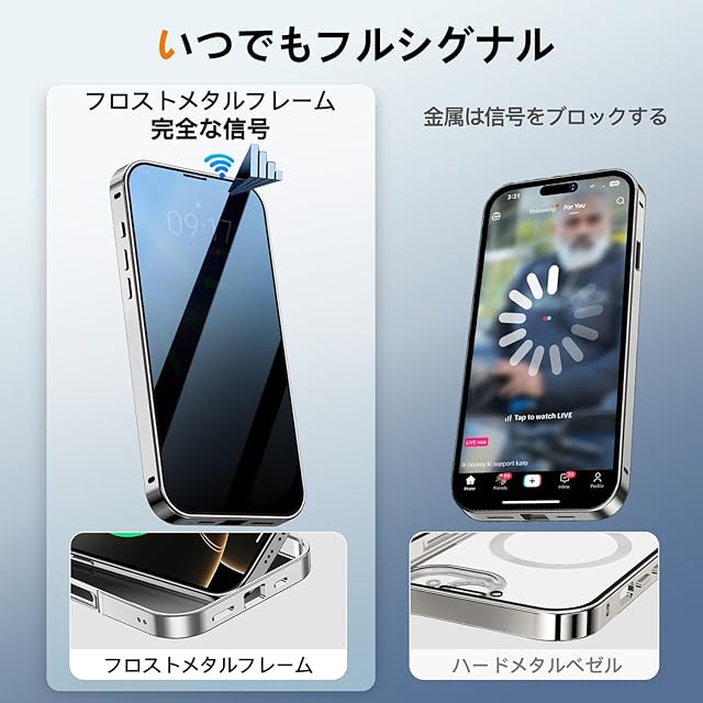 商品名:【スライドカバー磁気ロック・覗き見防止・新次元の一体型カメラ保護 +CD隠しスタンド】MESTRIEV iPhone 16 用 ケース 全面保護 Magsafe対応 ランヤードホール付き [本体を再現・マット金属フレーム ] 縦横両対応 9H強化ガラス ワイヤレス充電対応 クリア 両面スマホケース 高感度タッチ いphone16 用 ケース 6.1インチ (チタングレー)