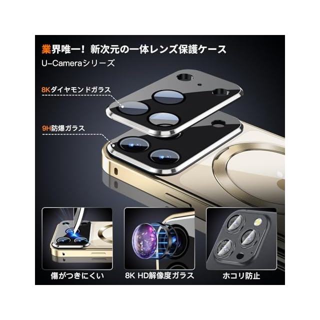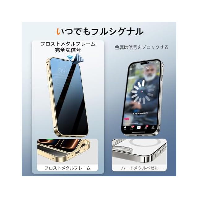 商品名:【スライドカバー磁気ロック・覗き見防止・新次元の一体型カメラ保護 +CD隠しスタンド】iPhone 17 Pro Max 用 ケース 全面保護 Magsafe対応 ランヤードホール付き [本体を再現・マット金属フレーム ] 縦横両対応 9H強化ガラス ワイヤレス充電対応 クリア 両面スマホケース 高感度タッチ いphone17 Pro Max 用 ケース 6.9インチ(ゴールド)