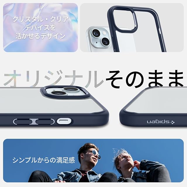 商品名:Spigen 【創業18年の技術力】 iPhone 15 ケース クリア 耐衝撃 黄変なし 米軍MIL規格取得 ストラップホール 透明 TPU バンパーケース 2重構造 レンズ保護 擦り傷防止 ワイヤレス充電対応 ウルトラ・ハイブリッド ACS06801 (ネイビー・ブルー)