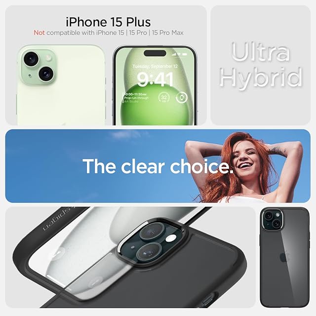 Spigen 【創業18年の技術力】 iPhone 15 Plus ケース クリア ストラップホール 米軍MIL規格 ウルトラ・ハイブリッド ACS06657 (マット・ブラック)