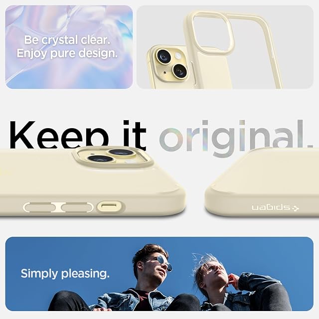 Spigen 【創業18年の技術力】 iPhone 15 Plus ケース クリア ストラップホール 米軍MIL規格 ウルトラ・ハイブリッド ACS06658 (ミュート・ベージュ)