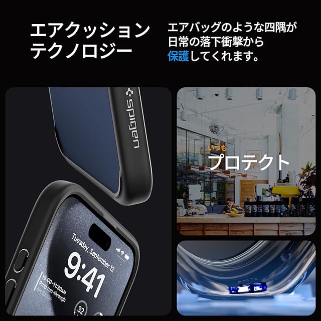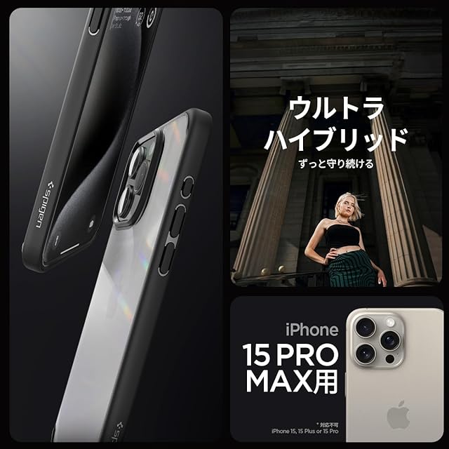 商品名:Spigen 【創業18年の技術力】 iPhone 15 Pro Max ケース クリア ストラップホール 米軍MIL規格 ウルトラ・ハイブリッド ACS06570 (マット・ブラック)