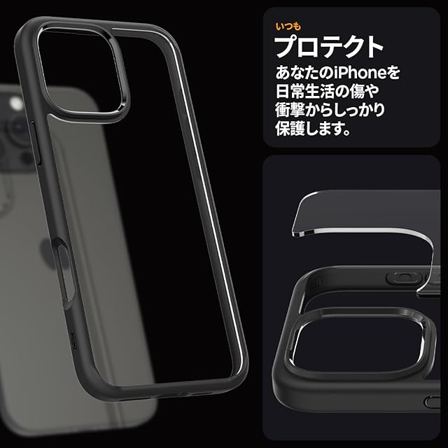【18年社歴の技術力】Spigen iPhone 16 Pro Max ケース クリア ストラップホール 米軍MIL規格 バンパー 耐衝撃 ウルトラ・ハイブリッド ACS07996 (マット・ブラック)