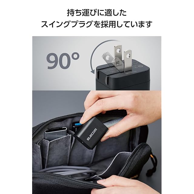 商品名:エレコム 充電器 Type-C USB-C 20W USB PD対応 1ポート PSE認証品 GaN採用 折りたたみ式プラグ ブラック 【 iPhone16 15 等対応】 EC-AC6820BK