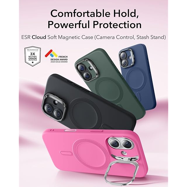 商品名:【デザイン受賞シリーズ!】ESR iPhone 17 ケース MagSafe対応 カメラボタン付き 隠しスタンド 調整可能 3倍米軍MIL規格 ワイヤレス充電対応 エアガードコーナー 耐衝撃 傷防止 軽量 スマホケース 高級柔らかな素材 雲のような肌触り いphone17ケース アイフォン17専用Cloudシリーズ(ピンク)