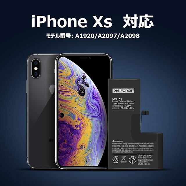 商品名:DIGIFORCE for iPhone XS 互換 バッテリー 2658mAh PSE認証済 【バッテリー用両面テープ付き 】(単品)