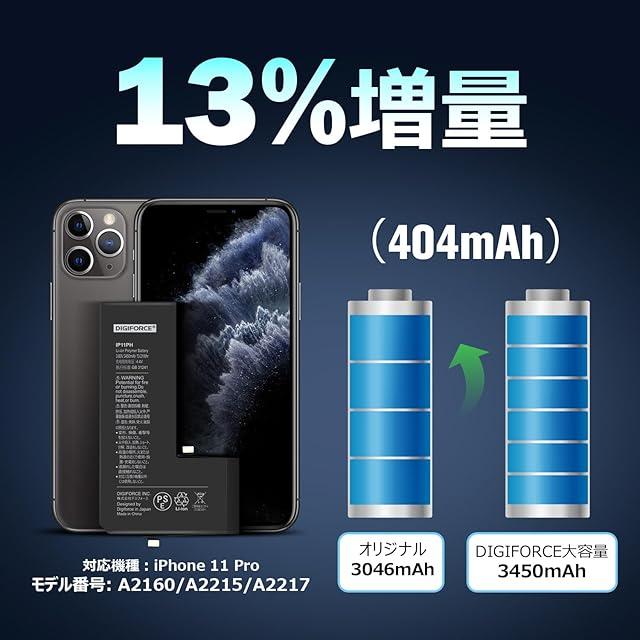 商品名:DIGIFORCE for iPhone 11 Pro バッテリー 大容量 PSE認証済 日本メーカー 【バッテリー用両面テープ付き】(単品)