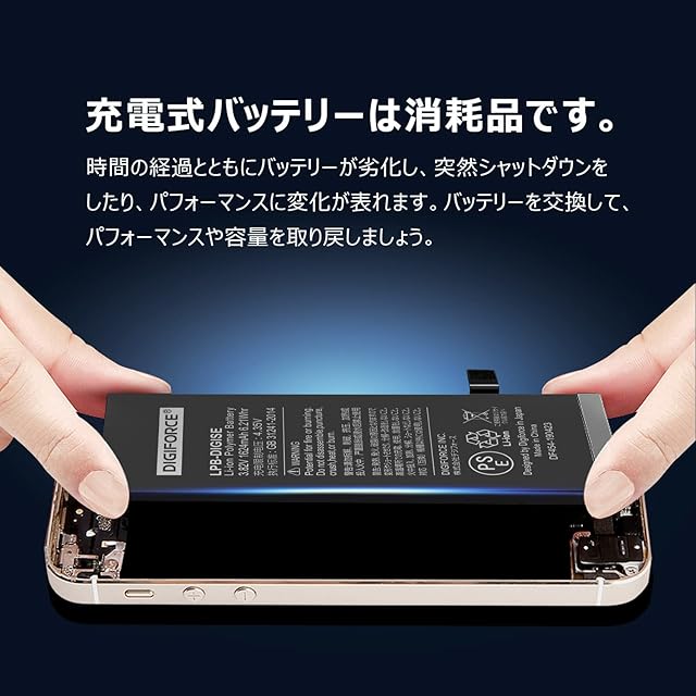 DIGIFORCE for iPhone SE 互換 バッテリー PSE認証済 日本メーカー 【バッテリー用両面テープ付き】(単品)