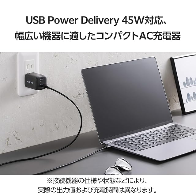 商品名:エレコム 充電器 45W 2ポート Type-C USB PD対応 PPS対応 GaN II採用 折りたたみ式プラグ ブラック EC-AC10945BK