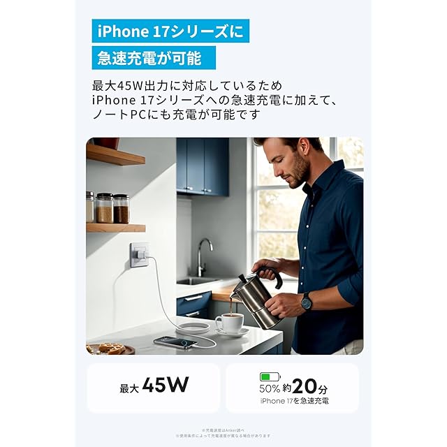 商品名:Anker Nano Charger (45W) with USB-C & USB-C ケーブル ホワイト USB PD USB-C 急速充電器【PSE技術基準適合/折りたたみ式プラグ】iPhone MacBook Air その他各種機器対応 iPhone 17 / 16 / 15シリーズ / Air 対応