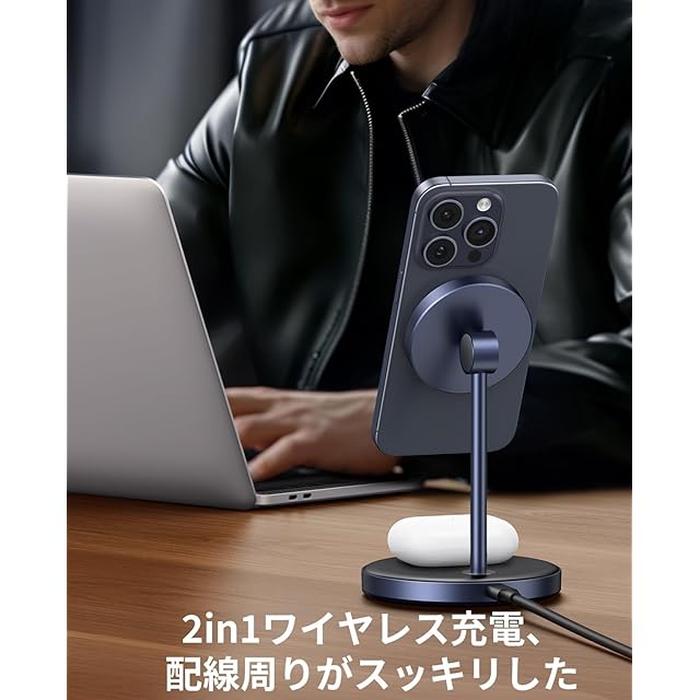 【優れた安全性能】この2in1 Magsafe スタンド 充電器は過電流、過充電、過電圧、過熱および温度制御機能、自動充電停止等機能を備えて、安全安心に充電できます。更に、最先端の充電スピードを搭載し、従来のワイヤレス充電器に比べて、電流転換率が約20%高速化した最大15W出力充電が可能です、約2-3時間で充満できます。また、 ワイヤレス充電器の底面に滑り止めマットが付き、落下防止できます。※ご注意:急速充電にはQC2.0/3.0、もしくはPD対応充電器(別売り)が必要です。