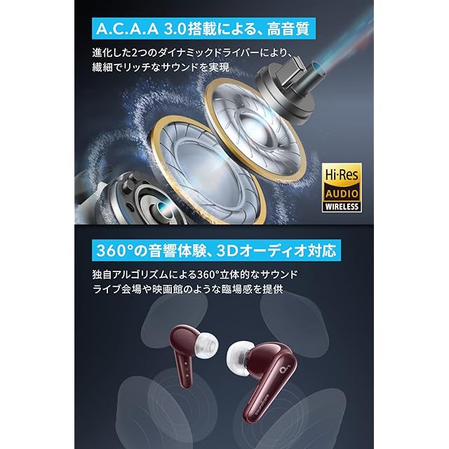繊細でリッチなサウンド:Anker独自のドライバー「A.C.A.A 3.0」搭載で細かなサウンドも明瞭に聞こえる繊細でリッチな音質を実現。また、高音質コーデック・LDACに対応しています。