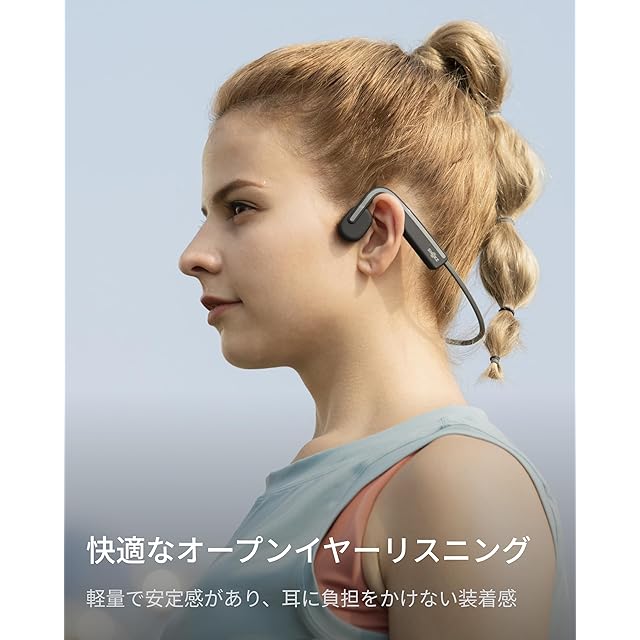 第7代骨伝導テクノロジー:防水規格が一層向上し、音漏れが著しく低減しています。わずか29gの軽量デザインで、快適な使用感としっかりとしたフィット感を体験できます。耳を開けたまま、周囲の状況に気を配りながら、ランニングやワークアウトを安全かつ心地よく楽しめます。
