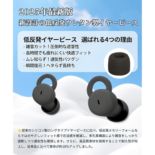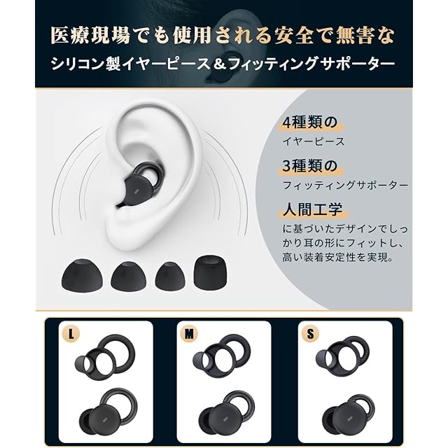 【遮音性バツグン・イヤホン兼耳栓】 最大24㏈の雑音抑制効果ががあります。周囲の音を気にすることなく通話や音楽が楽しめるほか、睡眠時のいびき、雑音に悩まされることもありません。
