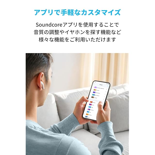 耳にすっぽり収まるフィット感:ノイズキャンセリング機能搭載のSoundcoreイヤホン史上最小サイズを実現。小型軽量設計のため、耳にすっぽりと収まり抜群のフィット感で装着いただけます。