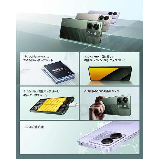 商品名:Xiaomi POCO M7 Pro 5G 8GB+256GB 日本語版 Simフリー スマートフォン 120Hz有機ELディスプレイ 大容量バッテリー docomo/au/SoftBank/Rakuten Mobile 回線対応 グリーン