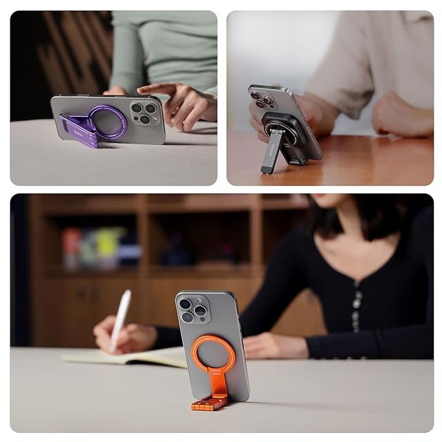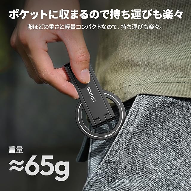 商品名:Ulanzi MA60 スマホ三脚 ミニ三脚 magsafeに対応 自撮り棒 スマホスタンド ミニ携帯スタンド 携帯リング スマホグリップ 薄型軽量 多機能角度調整可能 横置き/縦置き 折りたたみ式 両面マグネット式 アルミ製 持ち運び便利 安定 卓上三脚 セルフィー/生放送/撮影録画/動画鑑賞に最適 Android/iPhone17に対応