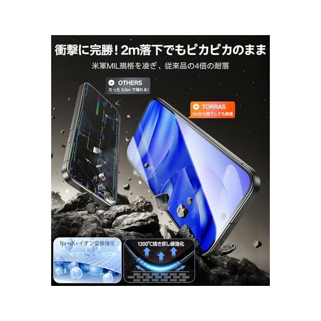 【航空宇宙用材料・表面硬度9H+Hv673】TORRASの Google Pixel 9a 用ガラスフィルムは日本製AGCの航空宇宙技術から生まれた「Dragontrail」ガラスを採用し、表面硬度が9Hを超え、鉱石の硬さを示すビッカーズ硬度Hv673を実現する。これにより、耐衝撃性が市販品よりも20倍向上し、激しい衝撃や圧力、摩擦からスマホを確実に守る。過去10年間にわたる保護技術の革新を受け継ぎ、世界20カ国で累計「9600万枚」を販売した。しかも、これまでに「アイフォン用の画面破損ゼロ」の実績を誇る。ちなみに、保護や美観を高めるため、TORRASの Pixel 9a 用の保護ケースとの併用をおすすめ!