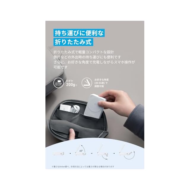 持ち運びに便利な折りたたみ式:折りたたみ式で軽量コンパクトな設計 旅行などの外出時の持ち運びにも便利です。さらに、お好きな角度で充電しながらスマホ操作が可能です。