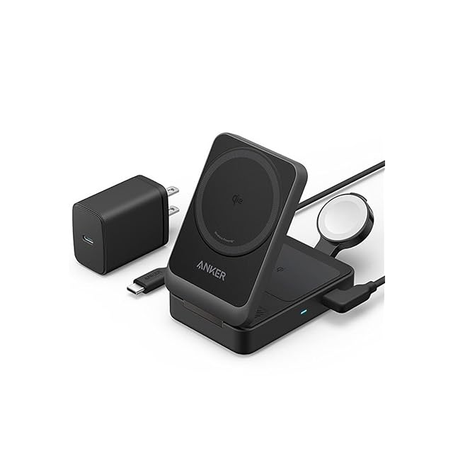 商品名:Anker MagGo Wireless Charging Station (Foldable 3-in-1) Qi2対応 マグネット式 3-in-1 ワイヤレス充電ステーション/ワイヤレス出力/Apple Watchホルダー付 iPhone MagSafe対応 iPhone 17 / 17 Pro / 17 Pro Max / 16 / 15 / 14 / 13 ブラック