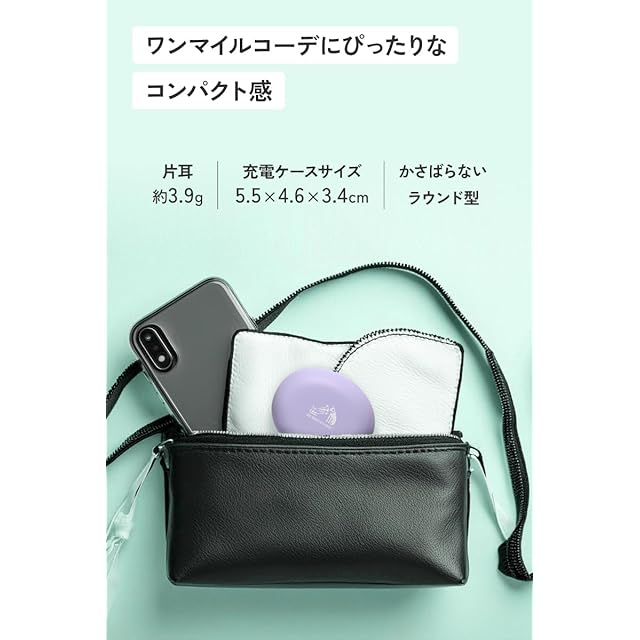 ✅耳にフィットし持ち運びやすいデザイン___ 本体片耳約3.9g、充電ケースは約30g。ラウンド型がかわいらしく、軽快な装着感と手のひらに収まる充電ケースのコンパクトさが特長、小さなポーチでも場所をとりません。カラーバリエーションはトレンドを意識したピンク、パープル、グリーンに、ベーシックカラーのブラック、ホワイトを加えた5色をラインアップ。イヤホン本体と充電ケースには、Victorブランドの象徴である「犬のマーク」をデザイン。