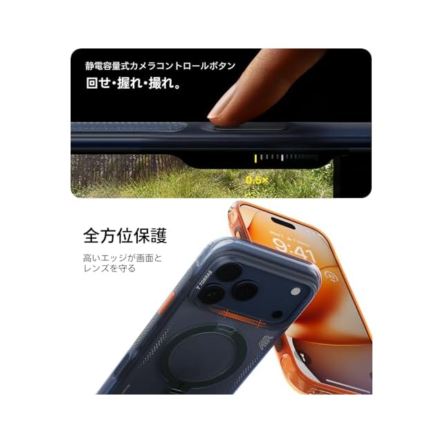 TORRAS iPhone17 Pro 6.3 インチ ケース スタンド リング 米軍 MIL 規格 エアクッション保護 軽量 360度回転 MagSafe対応 カメラコントロールボタン マグネット搭載 ワイヤレス充電 耐衝撃 滑り止め 耐衝撃 カバー アイフォン ランニング 登山 Ostand Q3 Air
