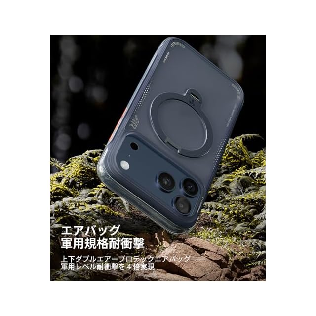商品名:TORRAS iPhone 17 Pro 6.3 インチ 用 ケース【エアバッグ 超強保護・米軍 MIL規格 】リング スタンド MagSafe対応 Ostand Q3 Air 360°定点回転 縦横両対応 MagSafe対応 ワイヤレス充電 カメラコントロールボタン付き 登山・アウトドア活動 真夜中・ブルー