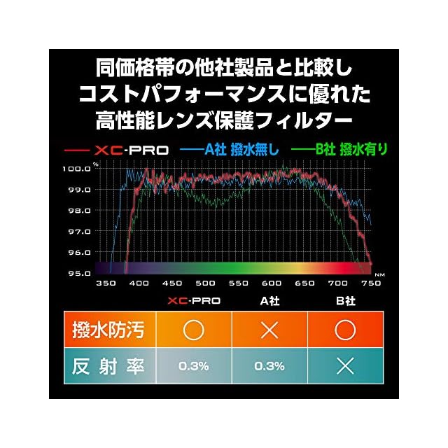 エクストリームコーティングにより高透過率を実現した光学性能。表面反射を極力抑え、レンズ性能を最大限引き出すレンズ保護フィルター。