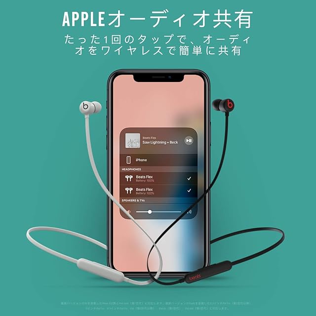 オーディオ共有を使って、Beats FlexとほかのBeatsヘッドフォンやAirPodsでオーディオをワイヤレスに共有