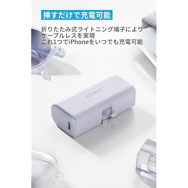 商品名:Anker Nano Power Bank (12W, Built-In Lightning Connector) (モバイルバッテリー 5000mAh 小型コンパクト)【MFi認証済/PowerIQ搭載/ライトニング端子一体型】 iPhone 14 / 13 / 12 シリーズ (パープル)