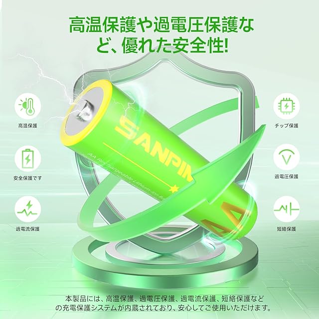【携帯型電子機器の人気選択】充電器機能付きのSANPIMA充電式のリチウム電池は、3600mAhと1.5Vの定常電圧出力を持ち、ゲーム機、VRグリップ、ドアベル、カメラ、フラッシュ、ドアロック、マイク、ラジオ、子供のおもちゃ、目覚まし時計、スケール、血圧計、モニターなどの高消費電力の機器に最適です。
