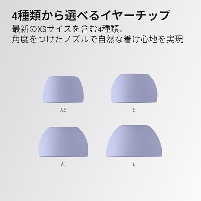 より多くの耳にフィットする4種類のイヤーチップ(XS、S、M、L)
