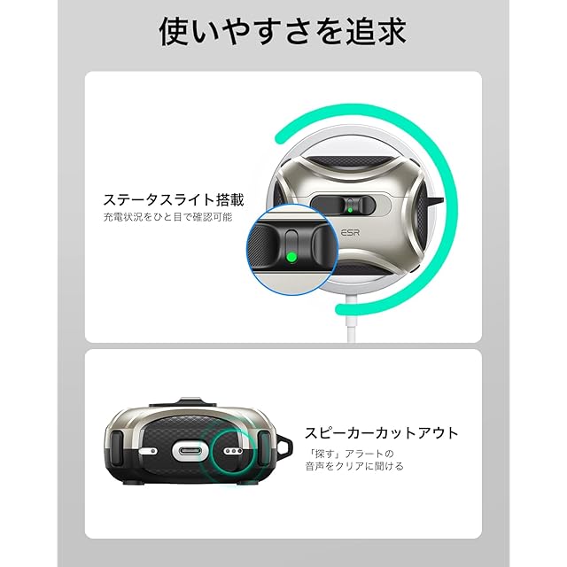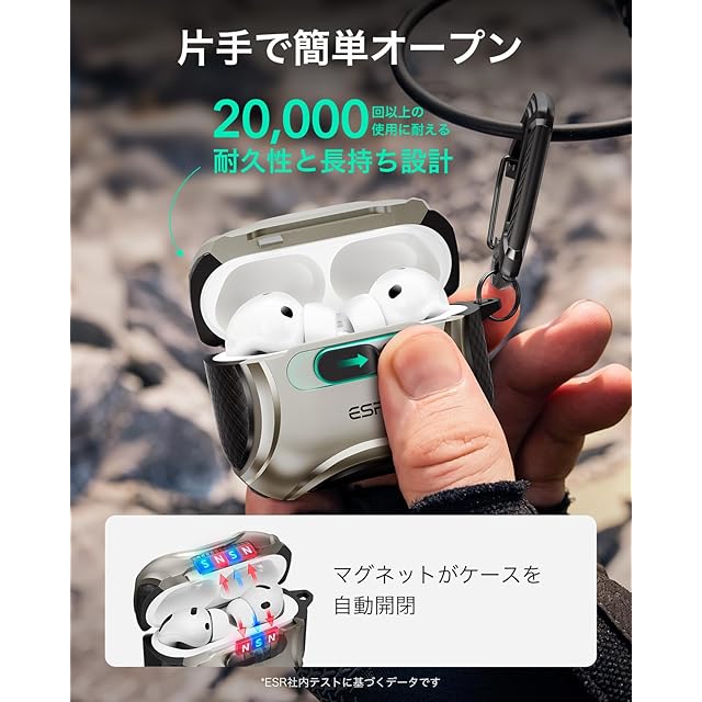 商品名:ESR AirPods Pro3 ケース(2025)MagSafe充電 USB-Cケーブル対応 落下衝撃保護 片手で簡単オープン キズ防止 AirPods Pro 第3世代 エアーポッズプロ3用 Cyberシリーズ チタニウム