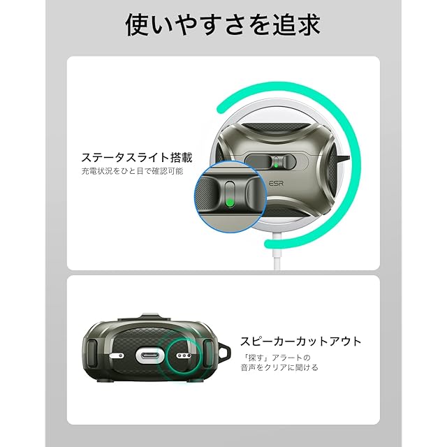 【強力な360度保護】:衝撃吸収ポリマーとエアガードコーナーが充電ケースを落下や衝撃からしっかり守ります。