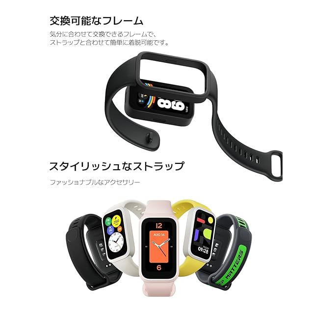 【カラフルなストラップと100種類以上のウォッチフェイス】バックルデザインは上質で美しいスタイリッシュなデザインで簡単に装着することができ、スタイルに合わせて個性を表現することができます。また、100種類以上のウォッチフェイスから自由に変更することができるため、好みに合わせストラップとともにカスタマイズをお楽しみください。