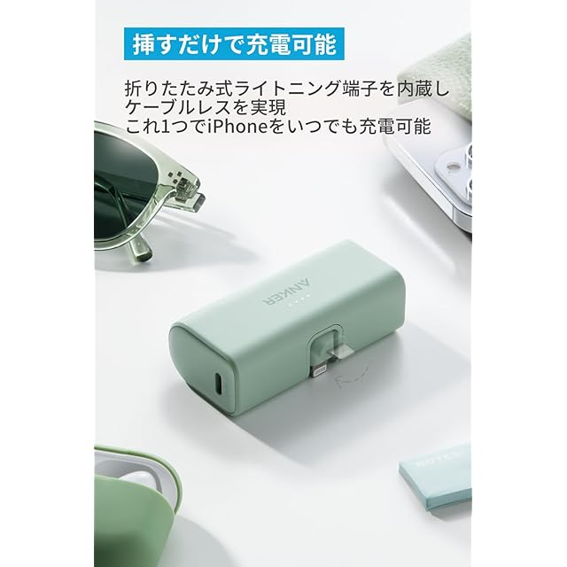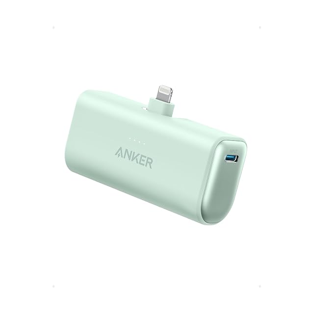 Anker Nano Power Bank (12W, Built-In Lightning Connector) (モバイルバッテリー 5000mAh 小型コンパクト)【MFi認証済/PowerIQ搭載/ライトニング端子一体型】 iPhone 14 / 13 / 12 シリーズ (グリーン)