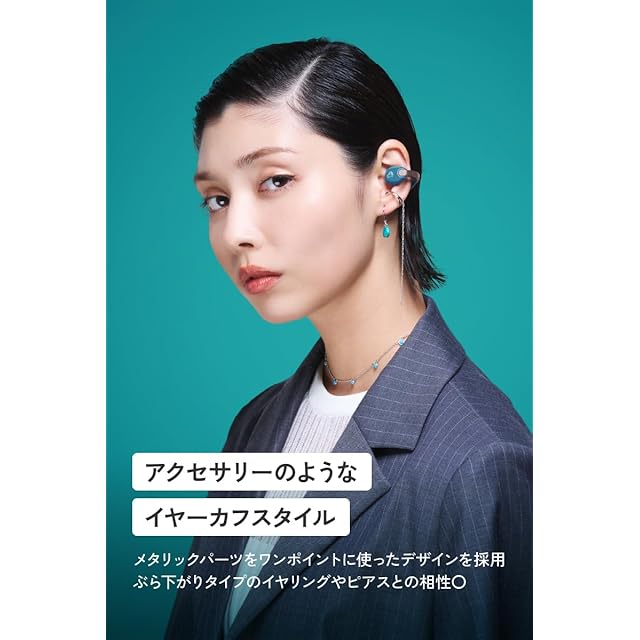 【アクセサリー感覚の軽く快適なつけ心地】 本機は、アクセサリー感覚で身に着けられるイヤーカフ型を採用。イヤホン本体には、当社独自の「フレキシブルアジャスト」機構を搭載し、耳に軽く挟んで装着する際に着脱しやすくするとともに、軽く快適な着け心地も実現。眼鏡やサングラスを着用したままでも使用でき、エクササイズやジョギングなど動きのあるシーンでも、長時間装着する場合でも、快適に使用できます。