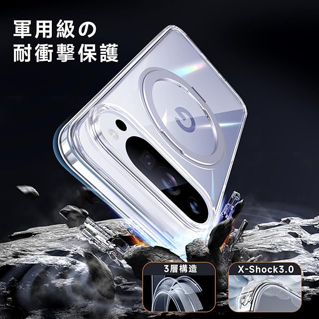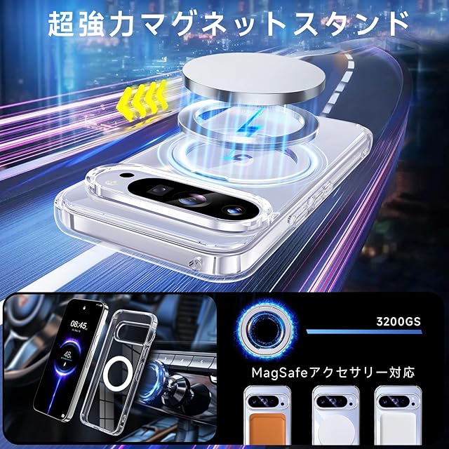 商品名:【米軍MIL規格・Magsafe対応】Google Pixel 10 / 10 Pro 用 ケース MagSafe対応 リング 360°回転スタンド機能 縦横両対応 透明 黄ばみ防止 ワイヤレス充電 レンズ保護 耐衝撃 携帯カバー グーグルピクセル10/10プロ カバー マグネット搭載 車載ホルダー マグセーフ対応 おしゃれ (クリア)